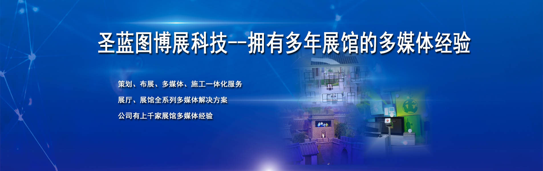 我們的核心業(yè)務(wù) 石家莊市圣藍圖博展電子技術(shù)有限公司,始創(chuàng)于2002年,致力于數(shù)字藝術(shù)體驗營造,將科技與藝術(shù)美學(xué)相融合,為客戶創(chuàng)意更有價值的科技互動體驗。服務(wù)涵蓋項目概念規(guī)劃、效果設(shè)計、施工執(zhí)行、交互內(nèi)容制作及后期維護服務(wù)。專業(yè)一體化的服務(wù)讓圣藍圖贏得良好的客戶信譽與口碑,更成為多家布展商、工程公司、裝飾公司授權(quán)戰(zhàn)略合作伙伴,行業(yè)領(lǐng)域值得信賴的合作伙伴。